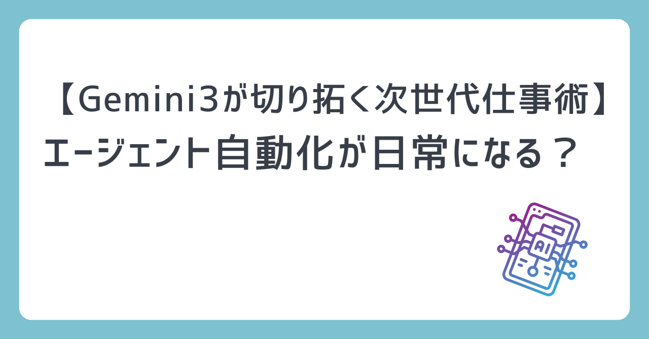 【Gemini3が切り拓く次世代仕事術】エージェント自動化が日常になる?